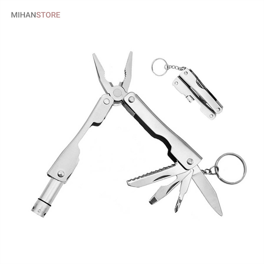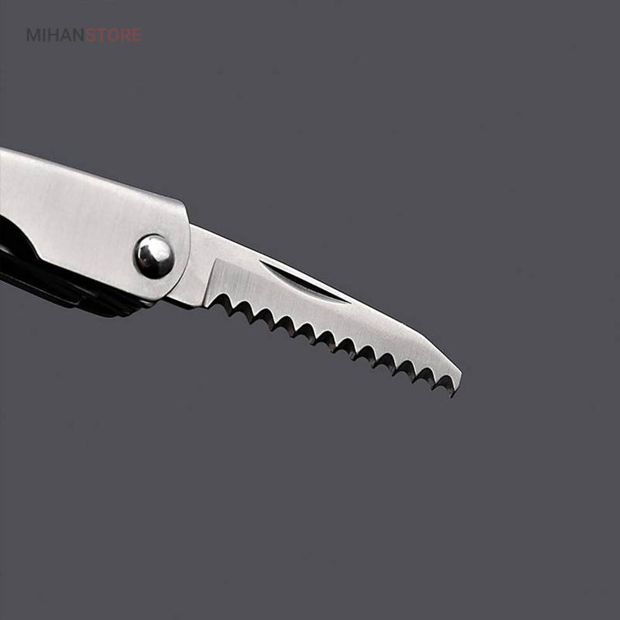 بسیاری مواقع در طول روز یا زمان سفر، به ابزار بسیار سادهای مانند پیچگوشتی، چاقو و… نیاز پیدا میکنید؛ ولی قطعا هیچکس نمیتواند همهی این ابزارها را در کنار خود داشته باشد. در چنین شرایطی یک مجموعهابزار، بسیار کارآمد خواهد بود. این محصول ۷ ابزار با ۹ عملکرد دارد. از ابزارهای داخلی این محصول میتوان به «در بطری بازکن» اشاره کرد که برای بازکردن در بطری نوشابه به شما کمک میکند. همچنین این محصول یک «تیغه چاقوی کوچک» دارد که برای آشپزی در زمان سفر کاربردی است. از دیگر ابزارها میتوان به «اره» اشاره کرد که تقریبا تیز است و برای کارهای ظریف استفاده میشود. یک «پیچگوشتی چهارسو» نیز در این مجموعه لحاظ شده است تا بتوان در صورت لزوم، با خیالی راحت از آن استفاده کرد. بدون شک کاربردیترین ابزار این مجموعه «چراغقوه» است. این چراغقوه به صورت پیچی روشن و خاموش میشود و نور مناسبی برایتان تولید میکند. اصلیترین ابزار این وسیله «انبردست» است که بهنسبت اندازهاش، قدرت مناسبی دارد. قسمت پایینی انبردست نیز به دلیل تیغههایی که دارد، مانند سیمچین عمل میکند. برای اینکه بتوانید این محصول را با راحتی بیشتری حمل کنید، کیف کوچکی نیز همراه آن عرضه شده است.