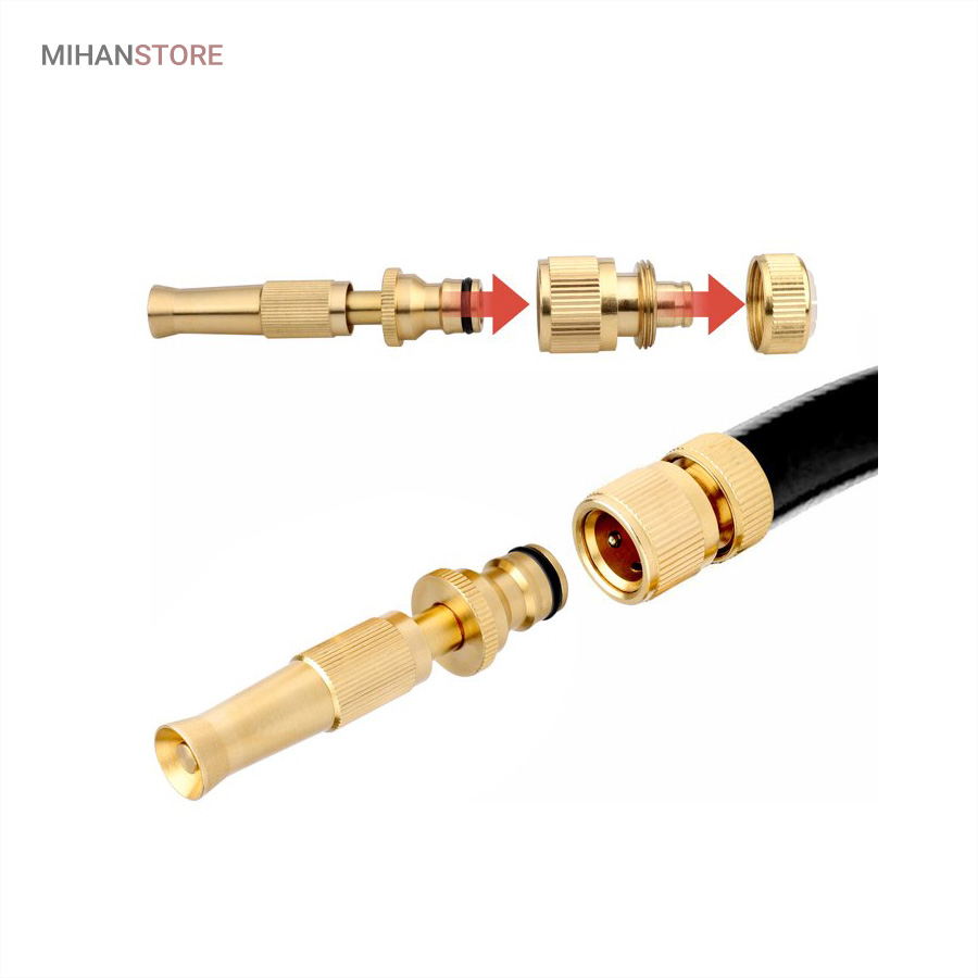 کارواش سر شلنگی برنجی یک گجت کاربردیست که با اتصال به سر شلنگ تبدیل به یک کارواش شلنگی پرقدرت شده که می تواند فشار آب را تا حدودی تقویت کند تا به سادگی بتوانید مانند یک کارواش از آن استفاده کنید و نگران فشار پایین آب نباشید.اگر از دسته افراد علاقه مند به باغبانی، گل و گیاه کاری، کشاورزی، شستن ماشین و… هستید، دیگر نگران نباشید، با این محصول، بسیاری از مشکلات افرادی که در این شغل ها هستند را برطرف می کند.این سر شلنگ از جنس برنج ساخته شده است که در برابر آب و هوا مقاوم است و اصلا زنگ نمی زند. همچنین دیگر نیاز نیست به دنبال کارواش های گران قیمت باشید، این سر شلنگ مشکل شما را حل خواهد کرد. کافی است سر شلنگ را به شلنگ معمولی متصل کرده و یک کارواش خانگی داشته باشید. از دیگر ویژگی های این محصول قابلیت تنظیم شدن آن است، یک نازل دارد که آب را از مدل سوزنی تا پخش شونده به صورت کامل تنظیم می کند.این سر شلنگ طوری طراحی شده که می توان برای شستشو خانگی ماشین، کف حیاط، آبیاری گل و گیاه و باغچه از آن استفاده کرد. این آب پاش طوری ساخته شده که به گل و گیاه آسیب وارد نمی کند.اگر حیوان خانگی دارید، می توانید این آب پاش را تنظیم کرده و حیوان خانگی خود را به  راحتی بشویید.