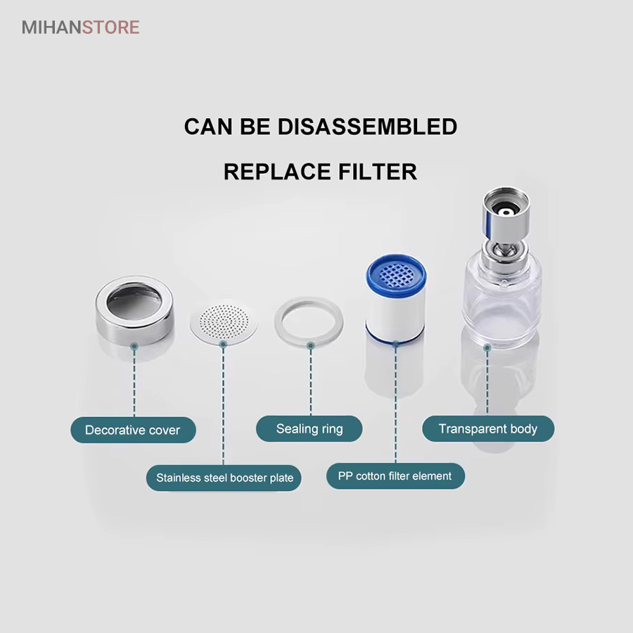 سرشیر تصفیه آب باعث میشود تا ذرات ریز آب فیلتر شود تا آبی تمیز تر نیز برای نوشیدن داشته باشید در اصطلاح باعث کاهش سختی آب میشود و بسیار مناسب استفاده برای نوشیدن شستشو و تبخ غذا میباشد، این محصول دارای دو فیلتر یدک که جمعا با فیلتر دستگاه 3 فیلتر برای شما ارسال میشود که میتوانید در صورت لزوم تعویض کنید.با قابلیت چرخش و مجهز به فیلتر، قادر است بطور کامل در تمام جهات بچرخد، تا به هر نقطه‌ای از سینک یا روشویی دسترسی پیدا کند و امکان شستشوی راحت را بدهد. این سر شیر آب، با استفاده از ترکیبی از مواد باکیفیت و پلاستیک ABS، عمر طولانی و دوام بی‌نظیری دارد. همچنین، فیلتر در آن، ناخالصی‌ها و سختی‌های آب شبکه را جدا کرده و خروجی آبی با کیفیت برتری را فراهم می‌کند.