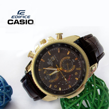 ساعت مچی Casio EF-558 با بند چرم یکی از جدیدترین مدل های عرضه شده کمپانی معتبر کاسیو می باشد. این ساعت دارای بند چرم بسیار با کیفیت و صفحه شیشه ای ضدخش می باشد که در 2 رنگ بند مشکی و قهوه ای و همچنین صفحه طلایی و مشکی عرضه شده است. این ساعت دارای تقویم روز شمار می باشد و تا 80 درصد نیز ضد آب است. هم اکنون می توانید ساعت مچی کاسیو EF-558 بند چرم را همراه با جعبه شکیل و 6 ماه گارانتی تعویض با قیمت استثنایی از فروشگاه میهن استور سفارش دهید.